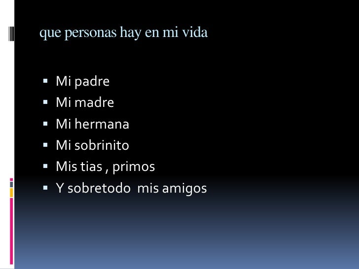 - 10. que personas hay en mi vida Mi padre Mi madre Mi hermana Mi sobrinito Mis tias , primos Y sobretodo mis amigos